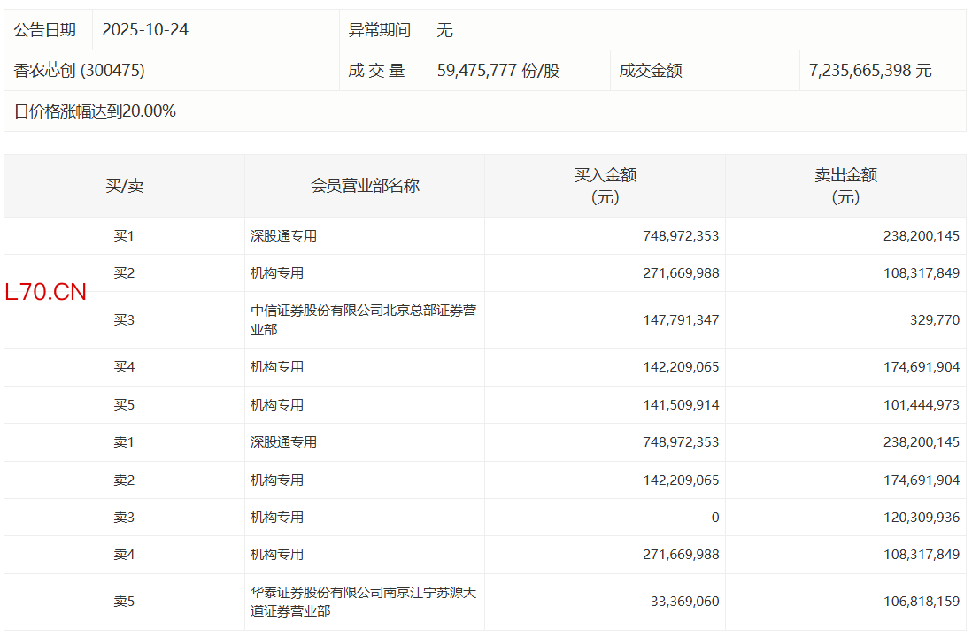 香农芯创今日20%涨停,2家机构专用席位净买入2.03亿元