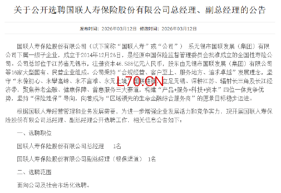 国联人寿启动高管选聘:总经理、银保副总各招1名