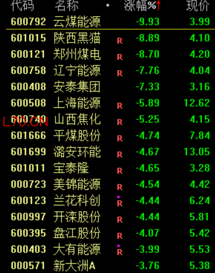 煤炭板块下挫,云煤能源跌停。