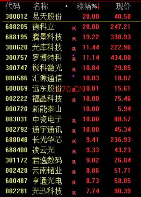 光通信概念股逆市走强,汇源通信、德科立、易天股份等多股涨停。