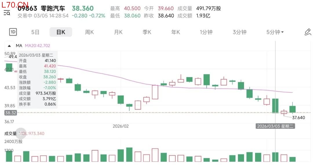 值得关注的是,零跑汽车(09863)虽然在3月2日和3月4日分别录得小幅增长,但3月3日大跌7%,领跌当日港股汽车板块,反映出市场对其估值与外部风险的担忧。