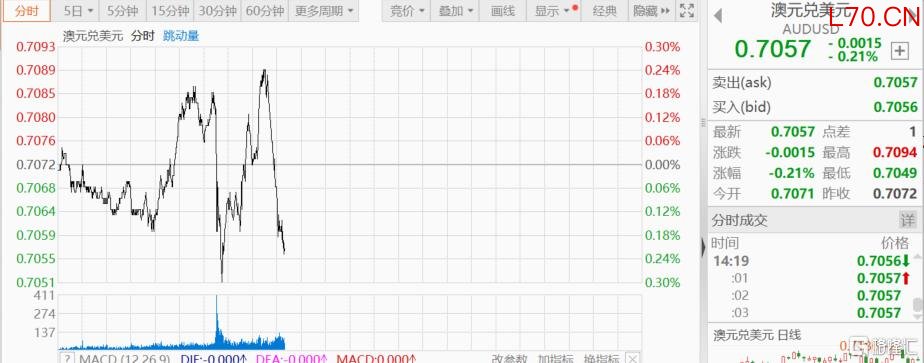 消息公布后,澳元兑美元汇率出现剧烈波动,目前在0.7左右浮动。