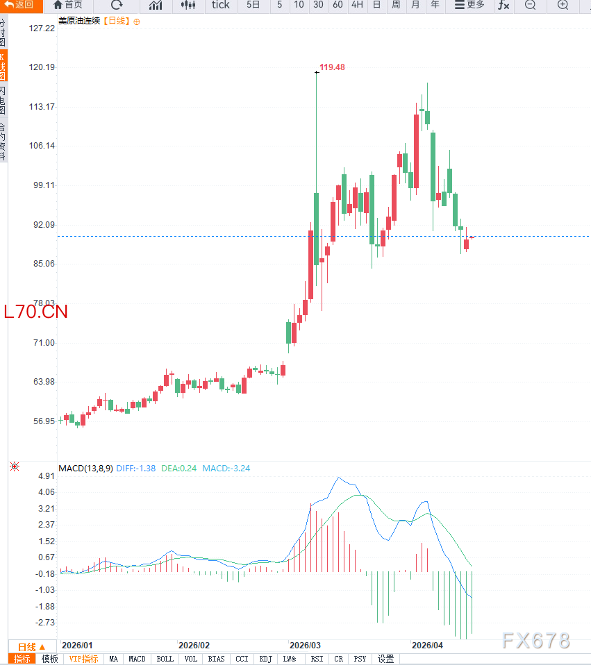 从市场反应来看,当前油价走势呈现出明显的“双重驱动结构”:一方面,中东冲突反复推升风险溢价;另一方面,外交谈判预期限制油价上行空间。WTI油价目前在89美元附近形成阶段性平衡区间,显示多空力量正在激烈博弈。